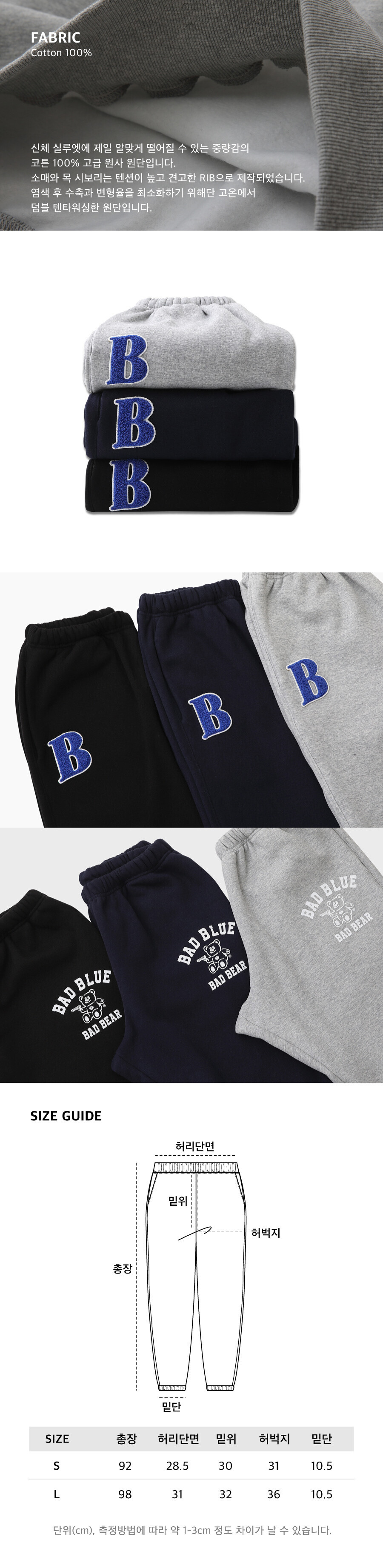 S : 총장 92cm 허리단면 28.5cm 밑위 30cm 허벅지 31cm 밑단 10.5cm