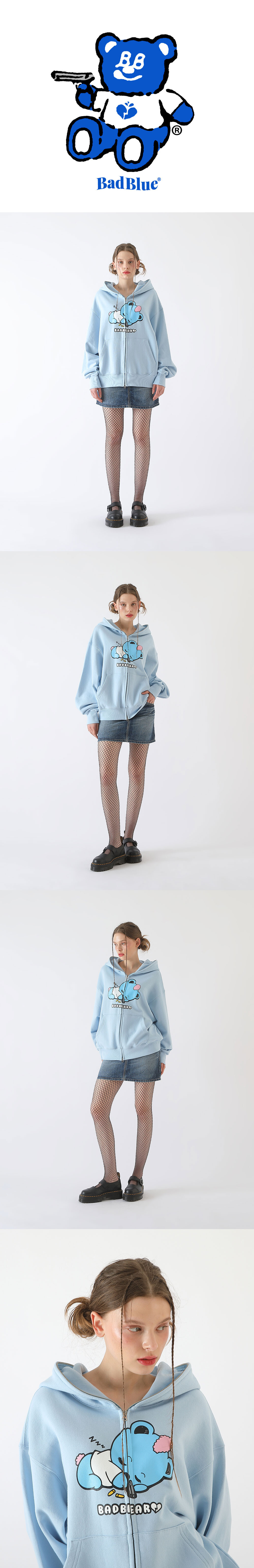 Baby BadBear Pull Zip Hoodie Skyblue