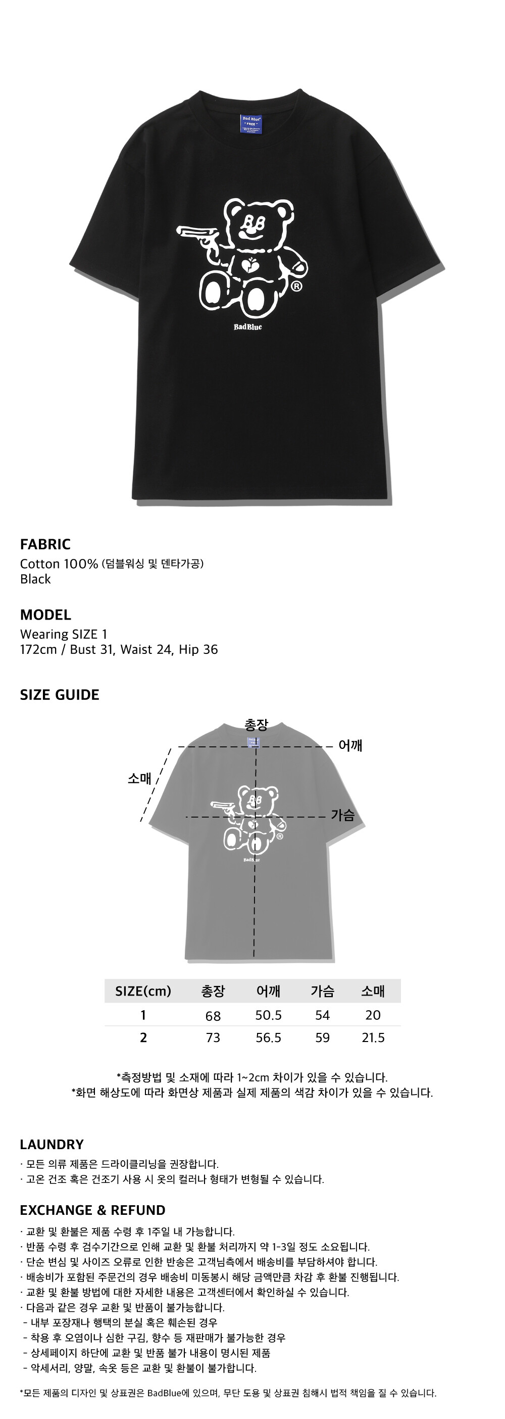 1 : 총장 68cm 어깨 50.5cm 가슴 54cm 소매 20cm