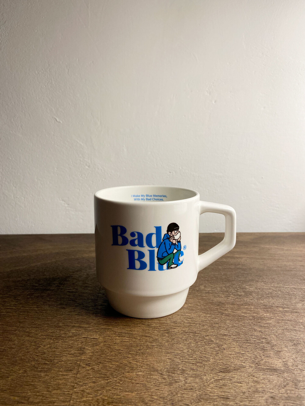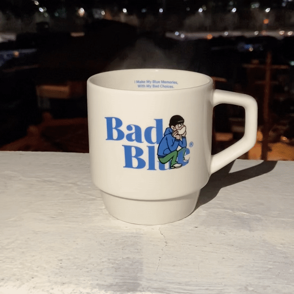 국내산 세라믹 소재의 스택머그 컵으로 고온에서 초벌 작업 후 배드블루 그래픽을 더한 데일리 머그컵입니다. 스택이 가능하여 보관할 수 있으며, 팬 꽂이나 홈 인테리어 굿즈로 활용하기 좋은 제품입니다.