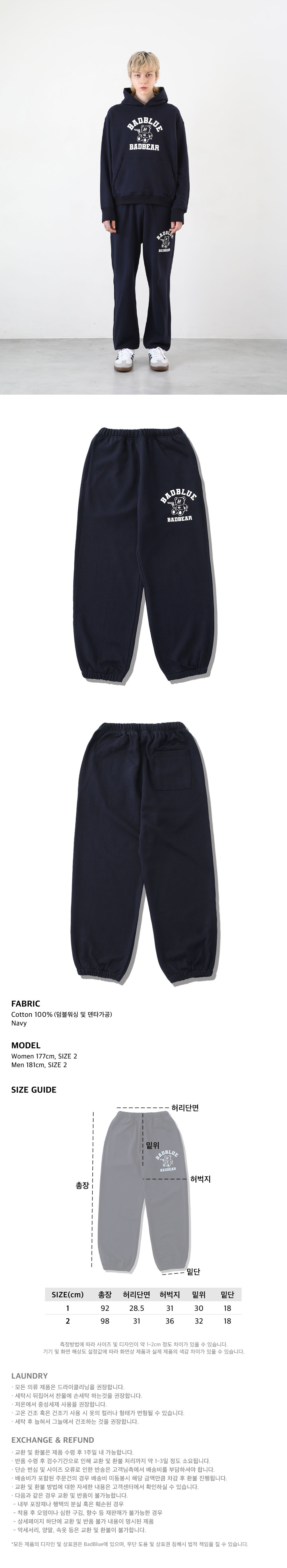 2 : 총장 98cm 허리단면 31cm 허벅지 36cm 밑위 32cm 밑단 18cm
