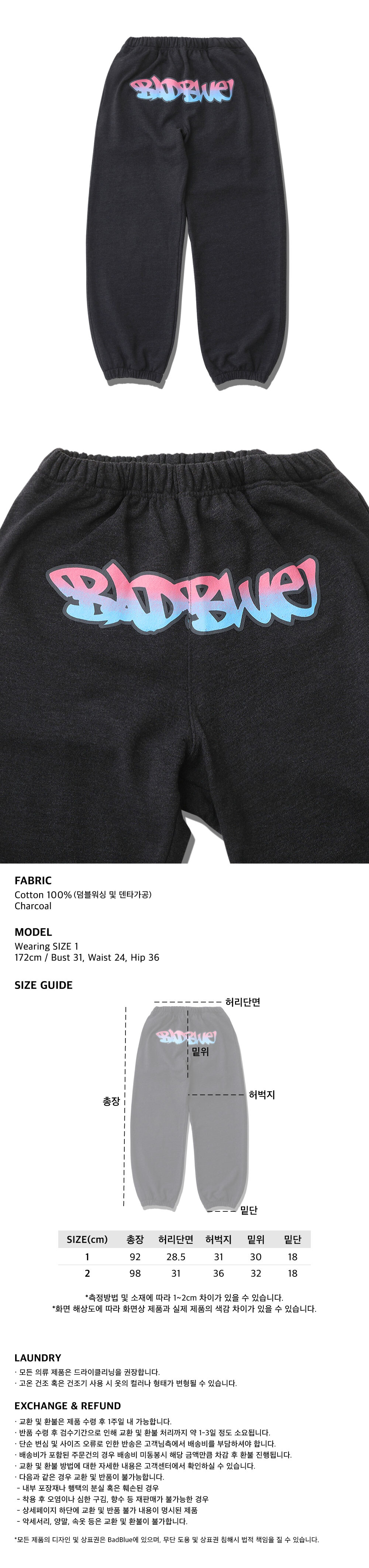 1 : 총장 92cm 허리단면 28.5cm 허벅지 31cm 밑위 30cm 밑단 18cm