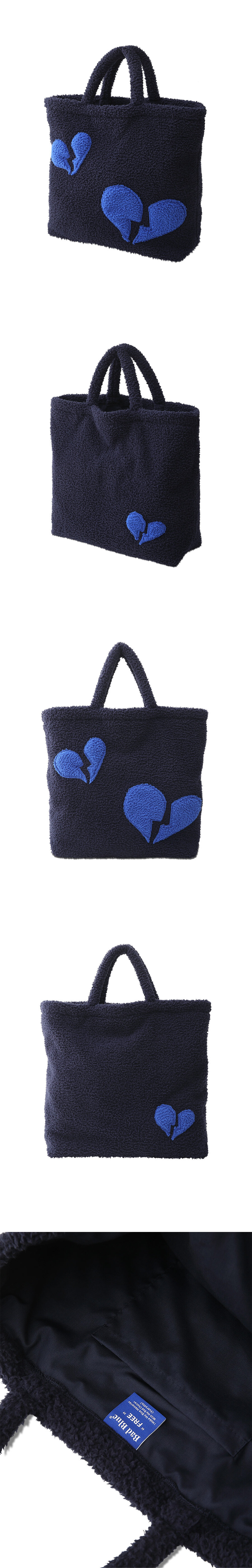 Heart Fleece Tote Bag Navy