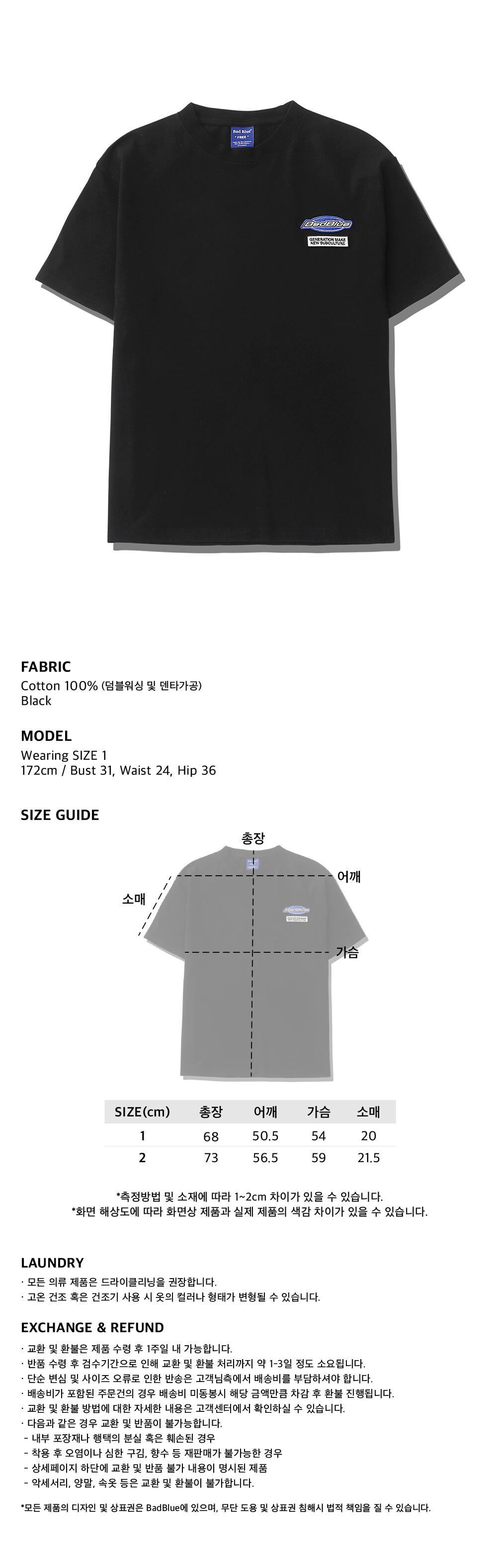 1 : 총장 68cm 어깨 50.5cm 가슴 54cm 소매 20cm