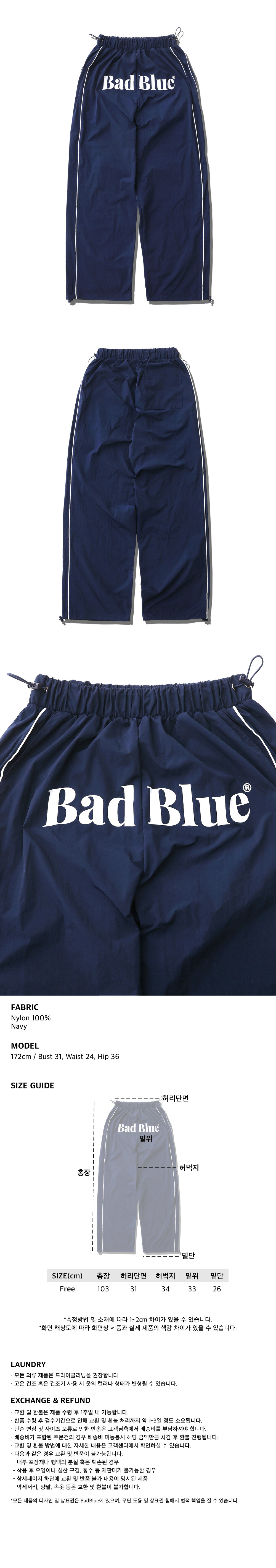 총장 103cm 허리단면 31cm 허벅지 34cm 밑위 33cm 밑단 26cm