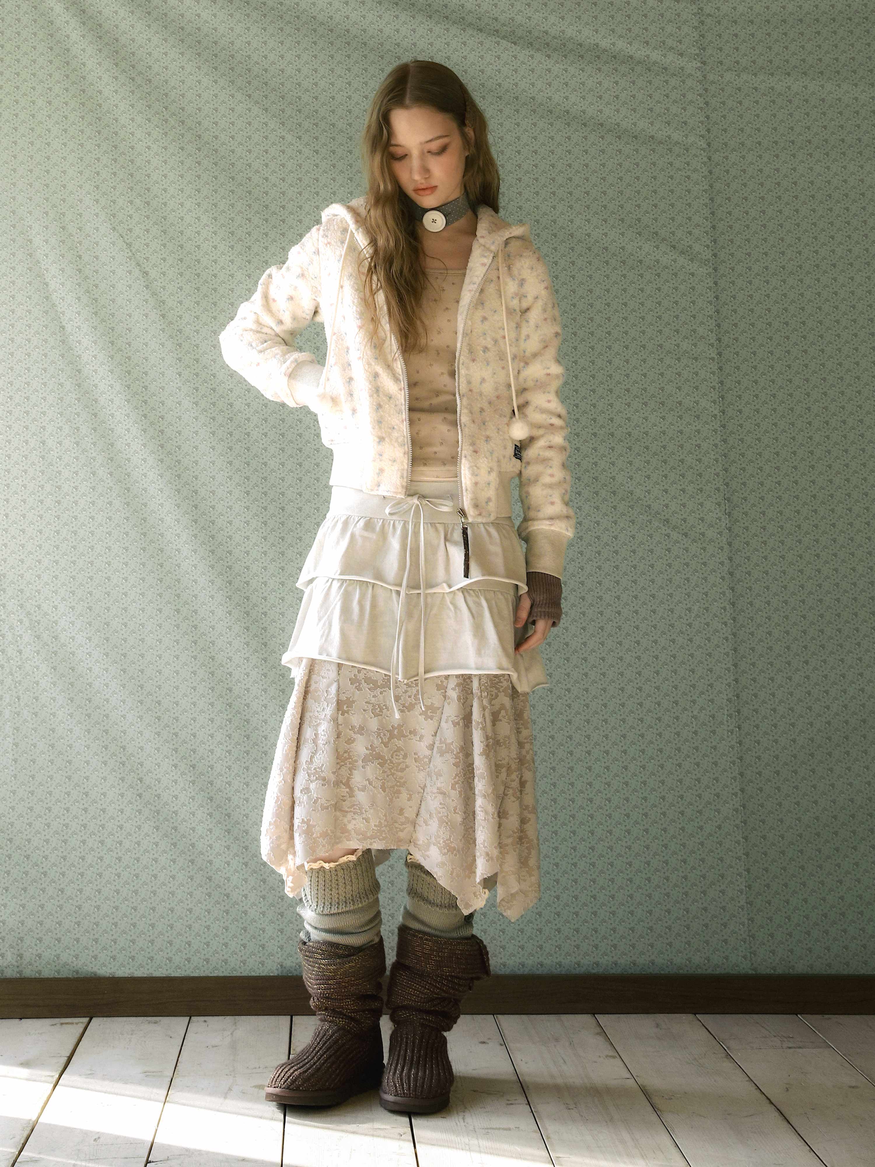 Baby Sheeps Ear Fleece Zip-up Crop Hoodie Ivory